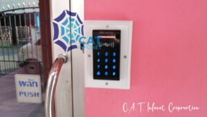 งานติดตั้งระบบประตูคีย์การ์ดทาบบัตรแบบ Weigrand เชื่อมต่อเข้ากับระบบ LAN และ Software